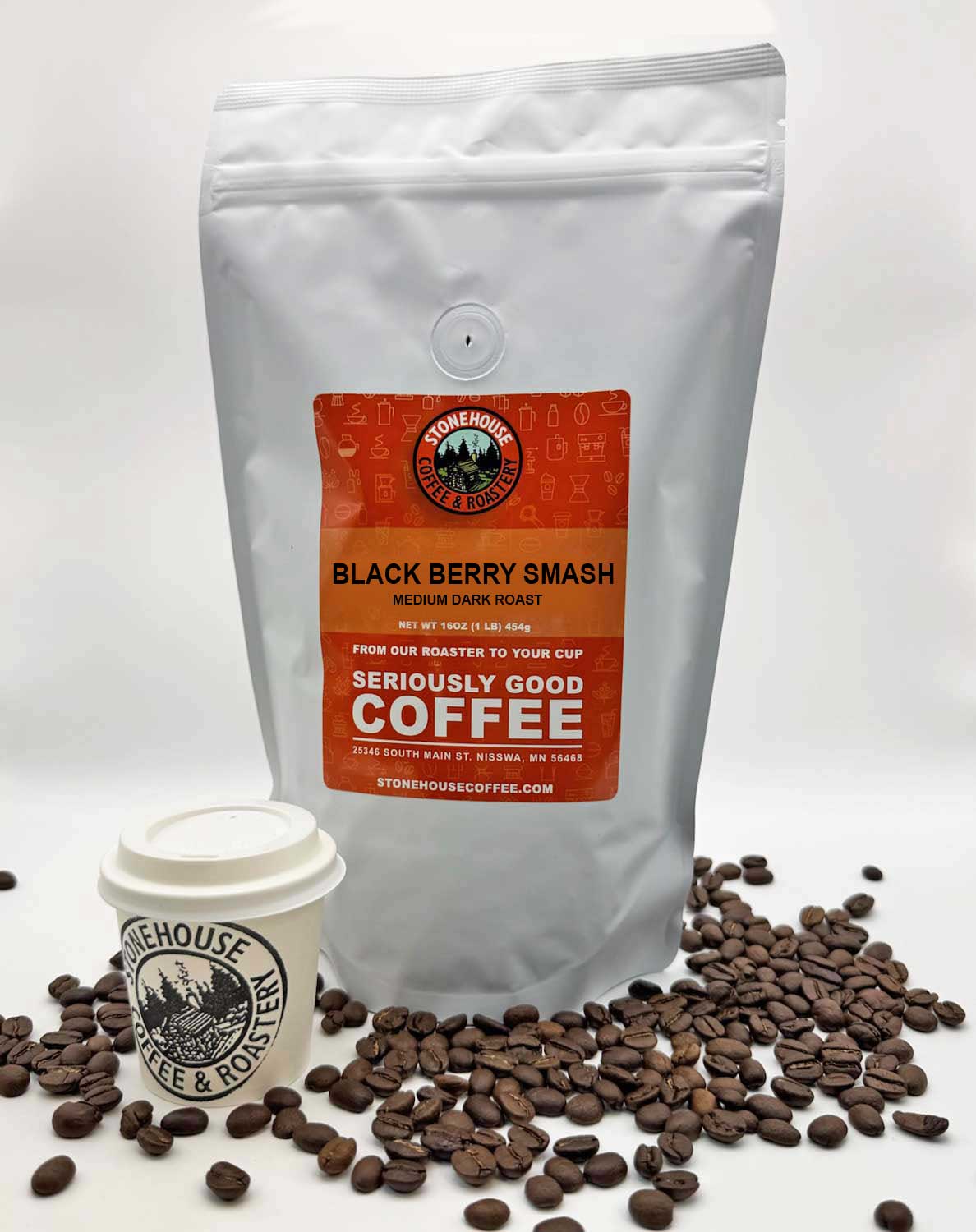 Medium Dark Roast. A new addition to our alcohol soaked beans. Our hand selected green beans soaked in black berry brandy and put through a special roasting process to roast off the alcohol, leaving you with notes of black berry and a mellow sweetness.