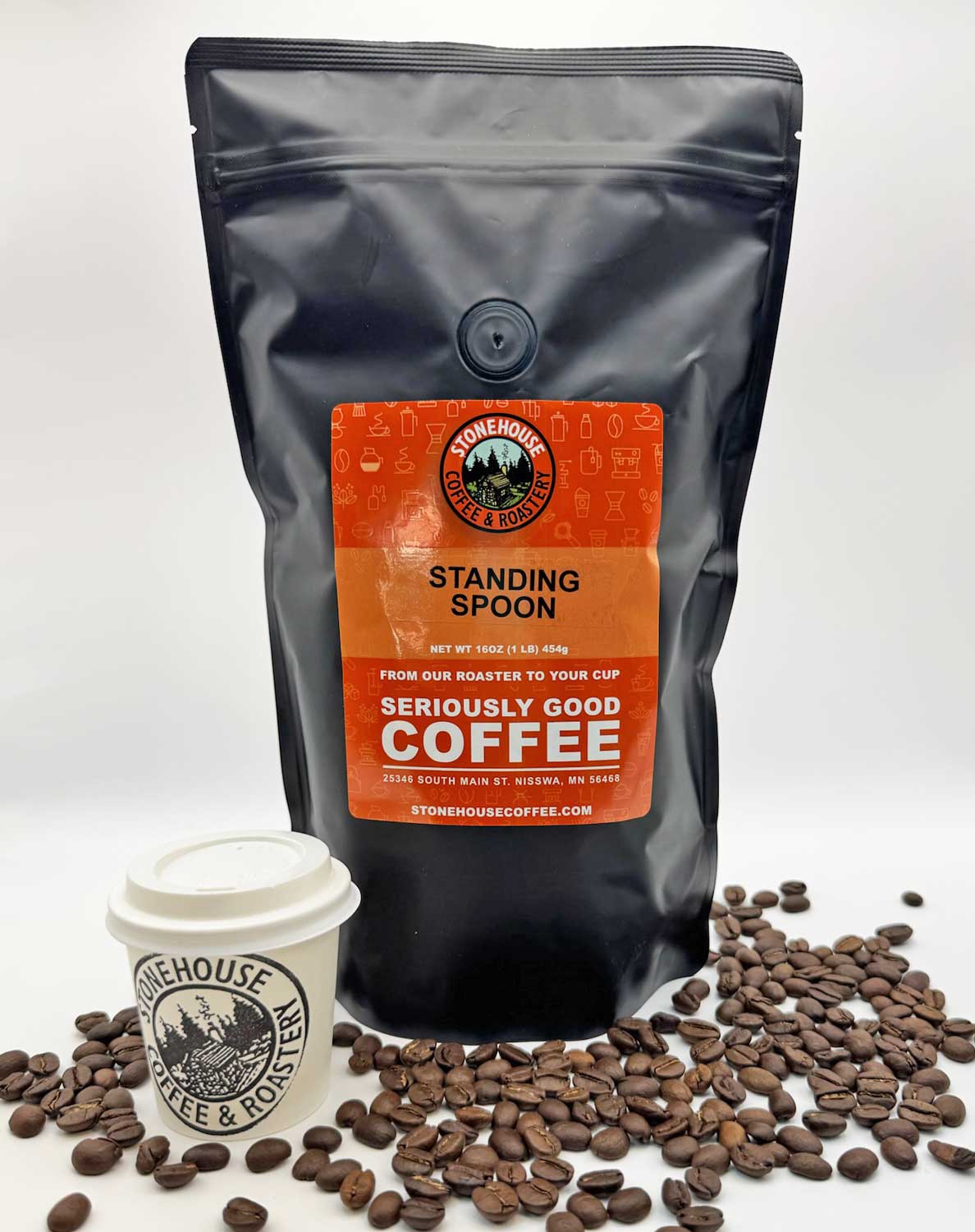 Sourced from Honduras’ mountainous farms, this coffee is roasted to the edge of darkness — a French roast that embraces intensity without tipping into bitterness. Dense beans from high-altitude soils carry deep flavors of dark chocolate, toasted caramel, and roasted nuts, with a lingering, smoky finish. Standing Spoon is not for the faint of heart — it’s a coffee with presence, power, and a whole lot of attitude.
