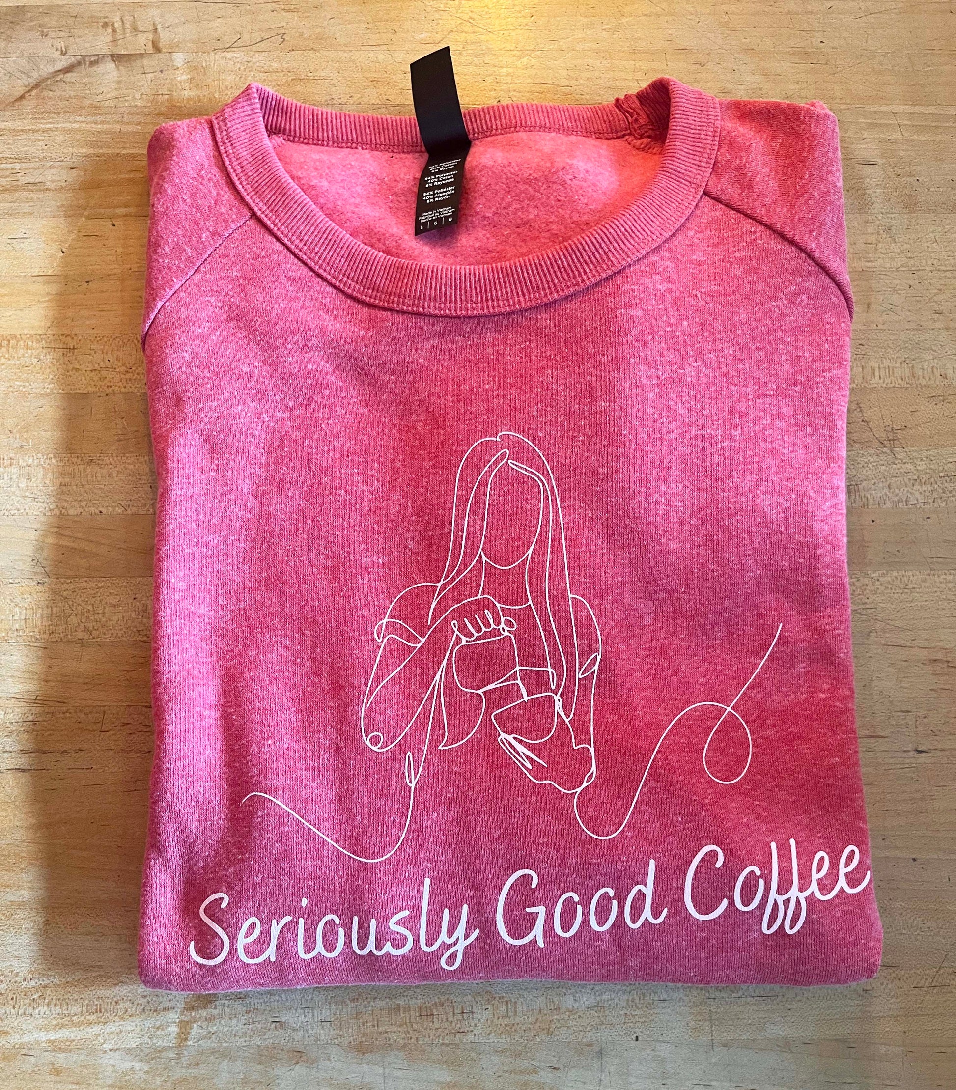 Ladies fit crewneck. Vintage maroon wash.